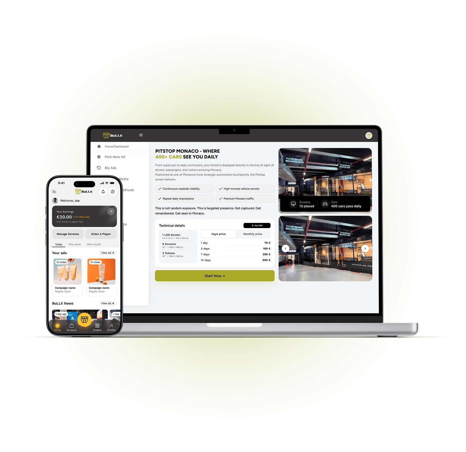 Manage your screens, ads and earnings in real time.